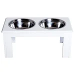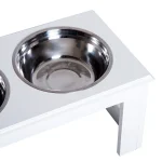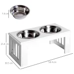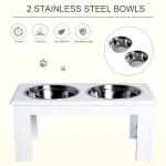 HEALTHIER EATING: Raised double elevated dog bowls do more than just feed your pet. They create a health-conscious environment by encouraging your furry friend to eat in a natural standing position.CLEANER AND SAFER: This dog raised feeding station keeps food off of the floor and away from wet places. The set comes with 2 stainless steel bowls that remove easily to refill and clean.NON-SLIP BASE: The solid non-slip base ensures that the bowls stay firmly in place while the frame is water-resistant to last years.DURABLE DESIGN: Pawhut stainless steel dog bowl is constructed of durable MDF board and stainless steel metal. Even if your furry friend is a messy eater, this elevated pet feeder stand will keep your floor clean.PET FEEDER DIMENSION: Overall Size: 58.4L x 30.5W x 25.4H cm. Suitable for small and medium-sized dog and shoulder height more than 30 cm.